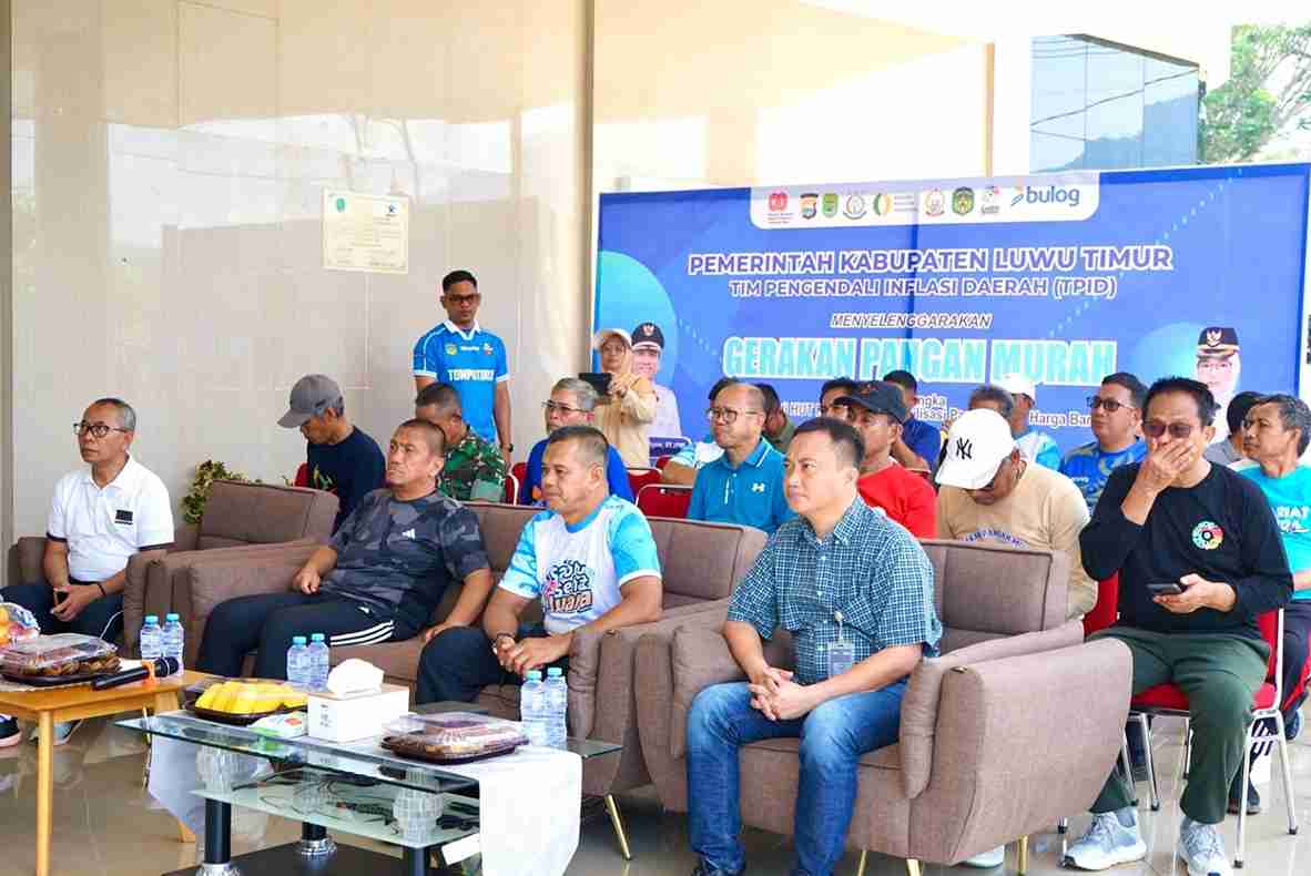 Luwu Timur, Sulsel- Bupati Luwu Timur, Irwan Bachri Syam, menghadiri pelaksanaan Gerakan Pangan Murah (GPM) Serentak se-Indonesia yang digelar di halaman Kantor Dinas Pertanian dan Ketahanan Pangan (DPKP) Kabupaten Luwu Timur, Sabtu (30/08/2025).